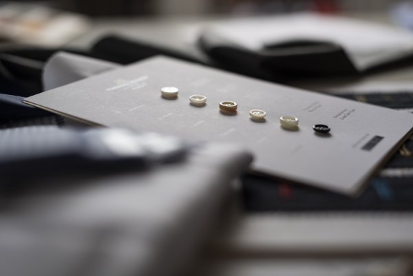 - Farbige Knöpfe, farbige Knopflöcher, farbige Steppnähte
